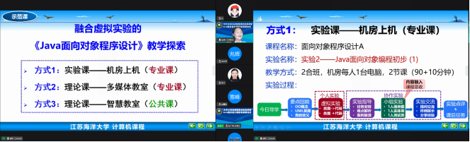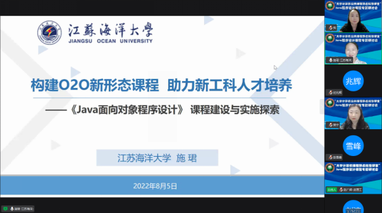 施珺教授做了题为“构建O2O新形态课程 助力新工科人才培养——《Java面向对象程序设计》课程建设与实践探索”的教学报告,并展示了“融合虚拟实验的Java面向对象程序设计”示范课。施珺教授介绍了公司综合近年来高等教育发展趋势、人才培养需求、课程特点与信息化资源优势,围绕O2O新形态课程的建设目标,从重构教学内容、精编教学案例、融通教学资源、打造课程特色四个方面开展课程建设,实现了“线上课程资源+MOOC学习+虚拟实验”与“线下纸质教材+课堂教学+上机编程”的无缝对接、优势互补。