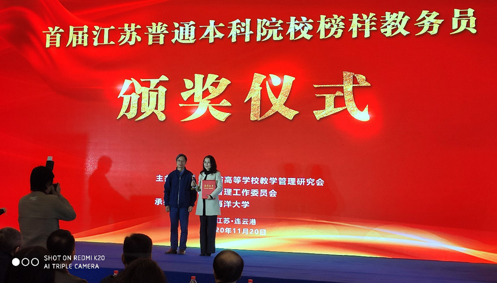 公司的黄霞老师获得了“首届江苏省普通本科院校榜样教务员”荣誉称号,在大会上受到了隆重表彰。