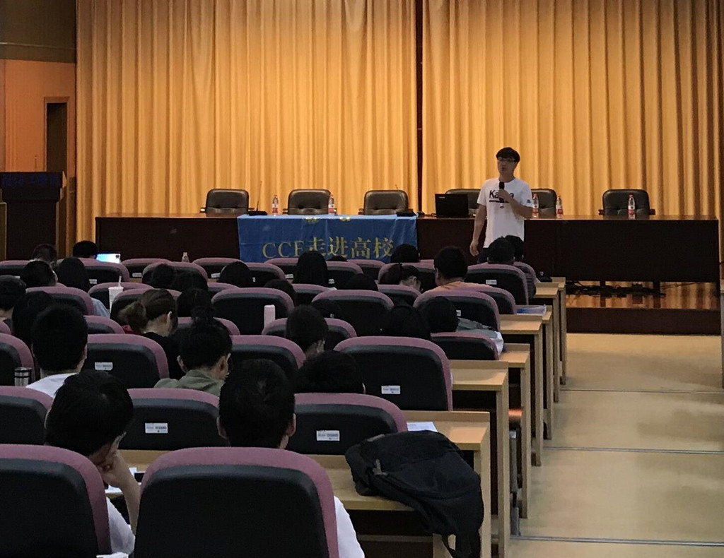 首先举行的活动是中国计算机学会“CCF走进高校”第622场——陈振宇走进淮海工公司。南京大学软件公司陈振宇教授做了题为“新时代老员工的就业创业”的报告,陈振宇教授从自身经历的几次互联网浪潮和两次的创业经历,为广大师生分享了对互联网发展趋势的认识以及软件类员工就业创业的思考。在座同学和陈振宇教授就创业、就业及学习上的疑惑进行了热烈的讨论。