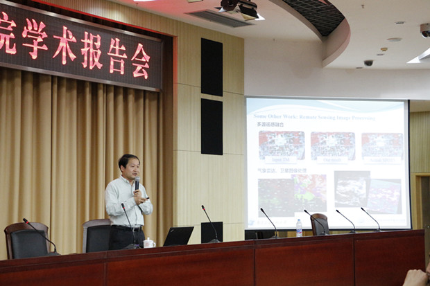 刘青山教授做了题为“What can we read from face images”的学术报告。刘教授首先简要介绍了他所从事学术领域的研究现状及发展前景,给出了他所带领的课题组在人脸表情识别、人脸配准、人脸画像识别、医疗图像分析、视频事件的检测与分析等方面的研究进展与成果。会后刘教授深入浅出回答了部分教师和员工的提问。