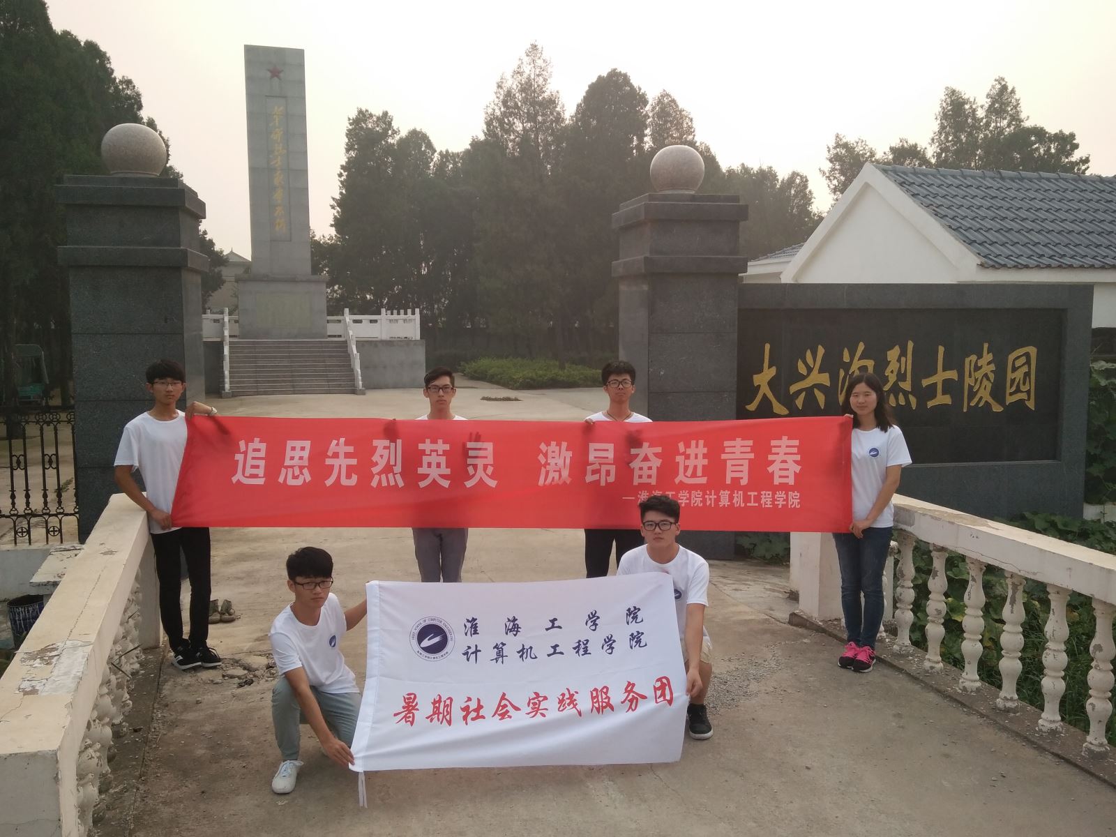 灌云县大兴沟烈士陵园位于灌云县图河乡大兴沟,为纪念解放战争期间大兴沟战役牺牲的烈士而建。实践队员来到烈士陵园,参观革命烈士事迹馆、瞻仰十八烈士墓、看望并慰问守墓老人。