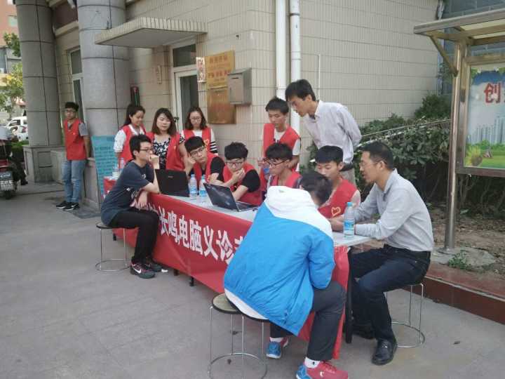 活动中,过路的居民纷纷驻足观看,针对家中电脑出现的问题进行提问。傍晚时分,刚放学的小员工们站在展板前认真地阅读。针对居民们提出的问题,志愿者们都耐心地一一进行解答。针对一些现场不能解决的问题,在征得对方同意后,身穿红马甲的志愿者带上工具箱,直接进行上门服务。
