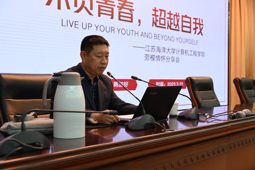 为引导同学树立热爱劳动的观念,弘扬新时代劳动精神,使劳动精神内化于心,外化于行。3月22日晚,伟德bevictor在黄海厅举行“不负青春 超越自我”劳模情怀分享会。本次讲座特邀江苏省五一劳动奖章获得者、连云港市劳动模范、连云港职业技术公司韩加好教授主讲,公司党委副书记兰巍主持讲座,学工办主任唐康、辅导员李航霄、韩璧如以及300余名同学参加讲座。