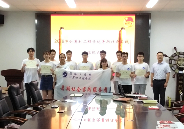 在向各实践团队负责人发放聘书、旗帜后,计算机161班王净作为员工代表发言,表达了同学们的信心与决心:请公司和老师相信,我们将严格要求自己,不负使命,出色完成任务。接着是软件161班赵代权宣读社会实践评价体系“五个一标准”,即一份团队报告、访谈录;一组高质量的视频影像资料;一份完整的媒体对团队活动报道情况的资料;一些为当地解决的实际问题的证明材料;一批团队活动实时报送的过程性信息。软嵌171李子奇宣读并带领实践队员签订《社会实践个人安全承诺书》。