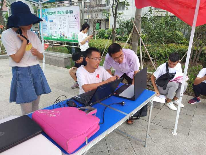 几天的时间里,志愿者们在炎热的天气里认真工作着、奔忙着,也得到了热情的社区工作人员的大力帮助和支持,他们提供了遮阳伞、桌椅、电源灯必不可少的设施,为义诊服务的顺利开展提供了极大的便利。实践队员们还配合部分社区开展了急救知识普及、拒绝邪教、扫黄打非等内容的宣传。居民的肯定与社区工作人员的支持让志愿者们如沐春风,很有成就感。“当一位老奶奶在我的帮助下学会和她的女儿视频聊天,我觉得她的开心就是我努力的价值。”一位明显被晒黑了好几个度的实践队员开心得笑眯了眼睛。