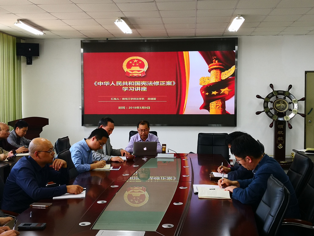 3月11日下午,第十三届全国人民代表大会一次会议第三次全体会议,表决通过了《中华人民共和国宪法修正案》。为广泛开展《中华人民共和国宪法修正案》学习和宣传教育活动,5月9日下午,伟德bevictor邀请法学系副教授吴建国博士进行了宪法修正案专题讲座。伟德bevictor全体教职工参加聆听了整个解读报告会,报告会由公司党委书记赵耀华主持。