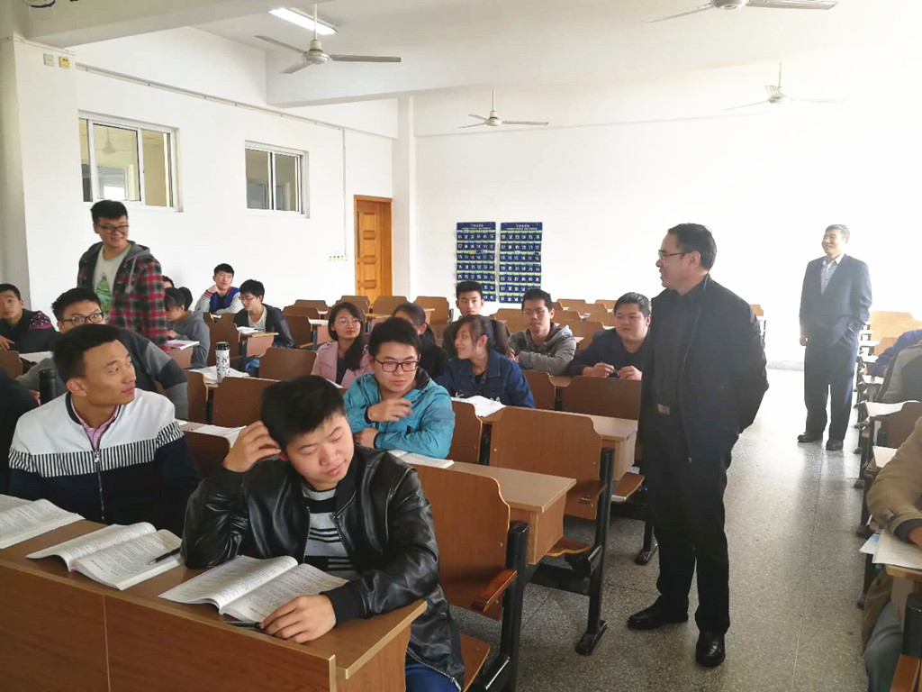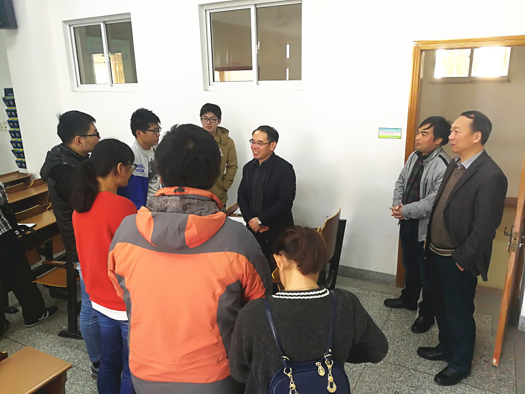 11月6日下午,副董事长陈先宏来到文通楼随机听取了伟德bevictor柏桂枝讲授《嵌入式软件开发》、周天源讲授《数据结构》两门课程。他认真听取老师授课、仔细观察员工的听课状态,并不时进行记录。利用课间休息时间,陈董事长主动和授课老师、员工进行交谈,询问他们在工作、学习、生活等方面遇到的困难,并向大家征求对公司各项工作的意见建议。当听到一位同学诉说希望早日建成伟德体育的期盼时,他勉励大家要努力学习、锻炼身体,当好大学创建的主人翁,早日实现淮工人的大学梦。