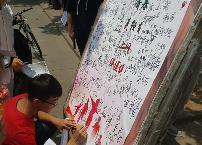 院员工会于6月1日中午在一食堂前开展“韶华莫轻负,上网须适宜”为主题的签名活动,他们向过往的同学讲述无节制上网和游戏的危害,号召同学们更好地利用自己的时间,远离网瘾,将老员工活过得更加充实而有意义。许多同学受到吸引,郑重地签下了自己的名字,做出了承诺。