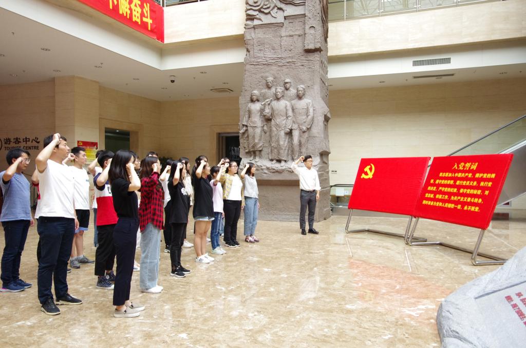 参观完毕后,在唐康老师的带领下,全体党员重温了庄严的入党宣誓仪式。礼毕,所有同学在纪念馆前厅拍照留影作为本次行程的纪念。