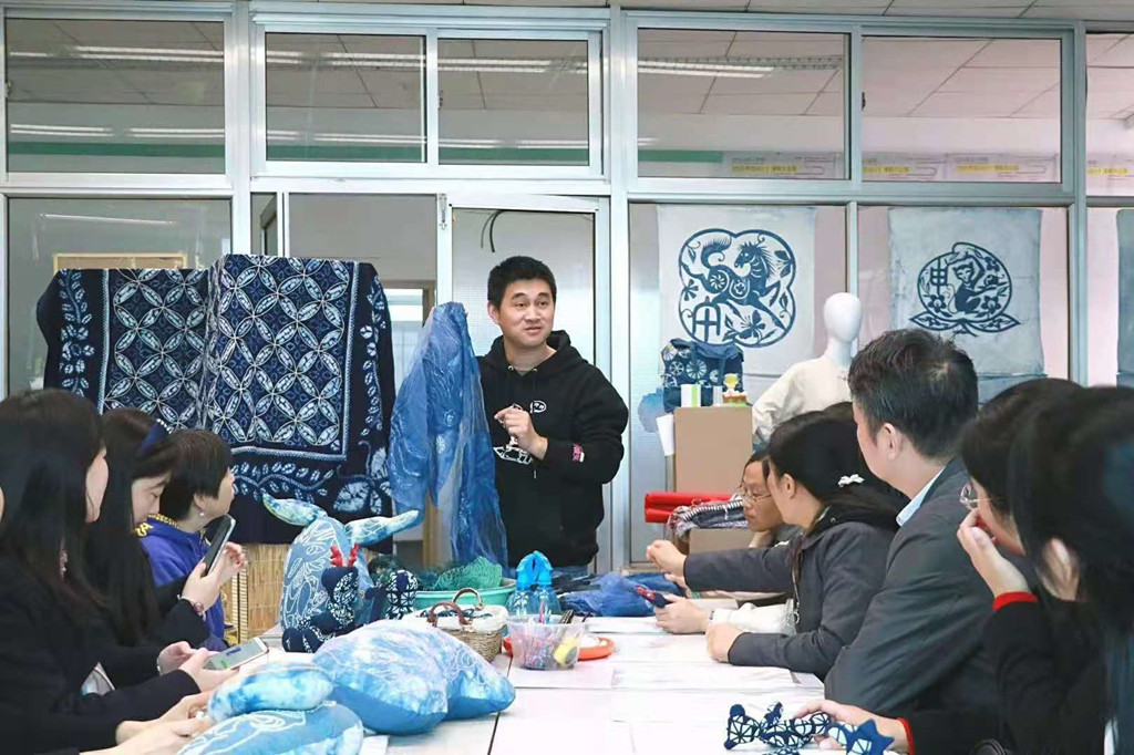 本次活动得到艺术公司的大力支持,艺术公司王栋老师亲自讲解示范。他首先介绍了艺术公司的概况,带领老师们参观了陶艺制作中心,详细介绍陶艺工艺品的制作过程,随后指导大家进行扎染活动。