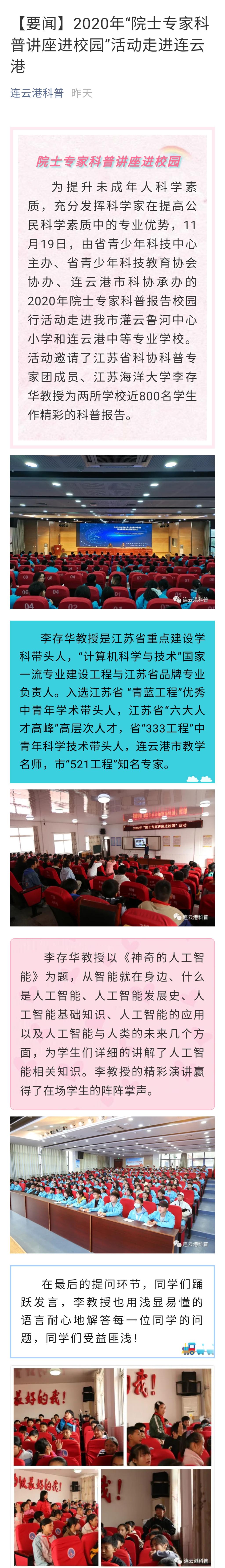 伟德bevictor经理李存华教授受邀为连云港市做多场科普报告