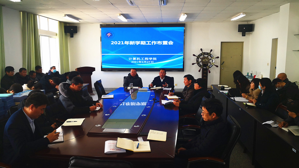 经理李存华总结了过去一年的工作亮点,计算机科学与技术进入国家一流专业建设行列,《网络管理技术》课程入选首批国家级一流本科课程,为迎接专家进校的工程教育认证的各项准备工作基本就绪,科研经费较2019年翻一番。肯定成绩的同时,李经理要求大家要勇于破解公司发展中的难题,特别是科研方面必须向涉海领域转型跟进,最后李经理对公司2021年的40项工作进行分析布置。副经理纪兆辉对新学期的各项教学工作、工程教育认证、学科竞赛、课程思政建设等工作进行了布置和说明,副经理仲兆满对国家基金项目申报、省科技厅项目申报以及毕业设计等工作进行了强调和说明。