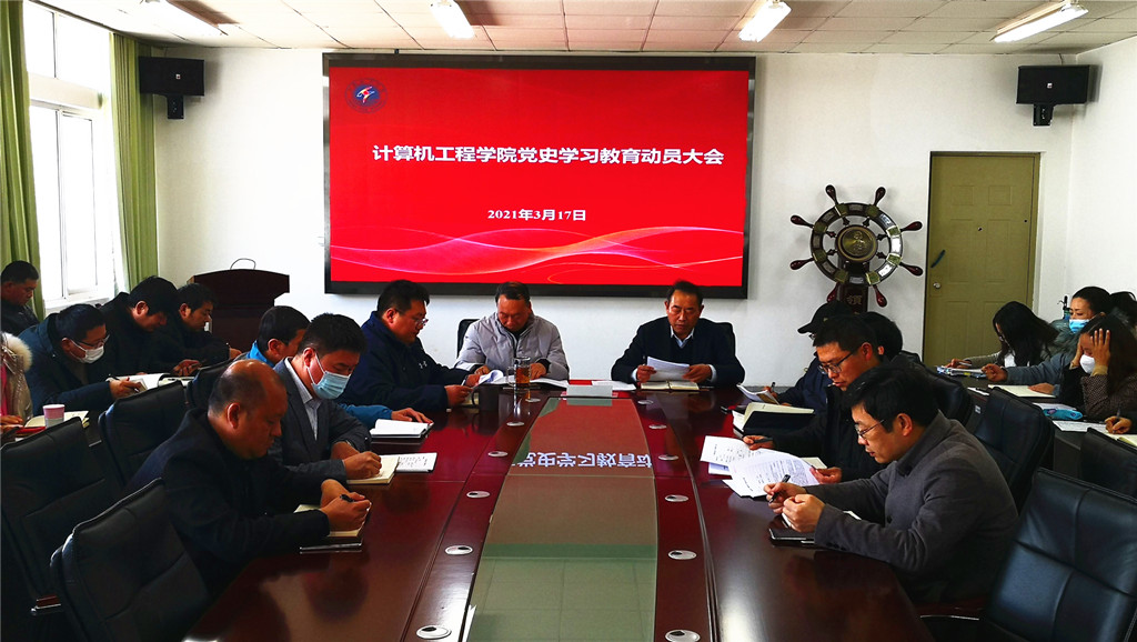 3月17日下午,公司在计算机楼306会议室召开党史学习教育动员大会,会议由党委副书记兰巍主持,全体教职工参加会议。