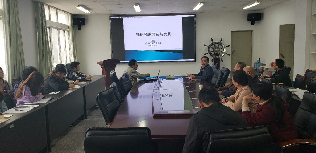 岳勤教授做了题为“编码和密码及其发展”的精彩学术报告,岳教授首先解读了《中华人民共和国密码法》,介绍了密码是国家的重要战略资源,是保障网络和信息安全的核心技术和基础支撑,直接关系到国家的政治安全,经济安全和信息安全。然后介绍了编码和密码学的发展历程以及所涉及到的研究基础。密码学已经涉及到生活中拍卖,投票,银行卡,护照,身份证等方方面面,其次,岳教授对目前密码学的研究做了总结主要包括密码设计和密码攻击。岳教授还介绍了一些比较常用的方法如Berlekanp-Massey算法,循环码方法以及目前密码学中所涉及的一些难题如离散对数问题,大数分解问题,译码问题等。最后岳教授给出了关于编码和密码学未来发展研究的展望。