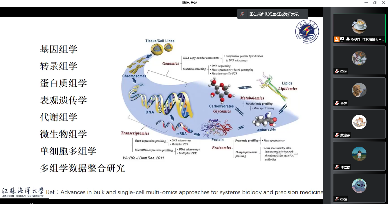 张巧生从组学数据获取及预处理、多组学整合分析应用、智能化精准医疗服务平台、基准医疗面临的机遇及挑战4个模块介绍了生物信息学研究的相关研究内容。