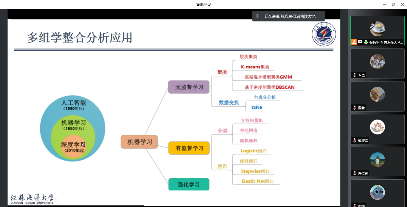 此外,张巧生博士考虑到听会研究生的主要学习及研究方向,从计算机学科相关角度介绍生物信息研究与机器学习的交叉情况,为研究生拓宽研究应用方向的认知。