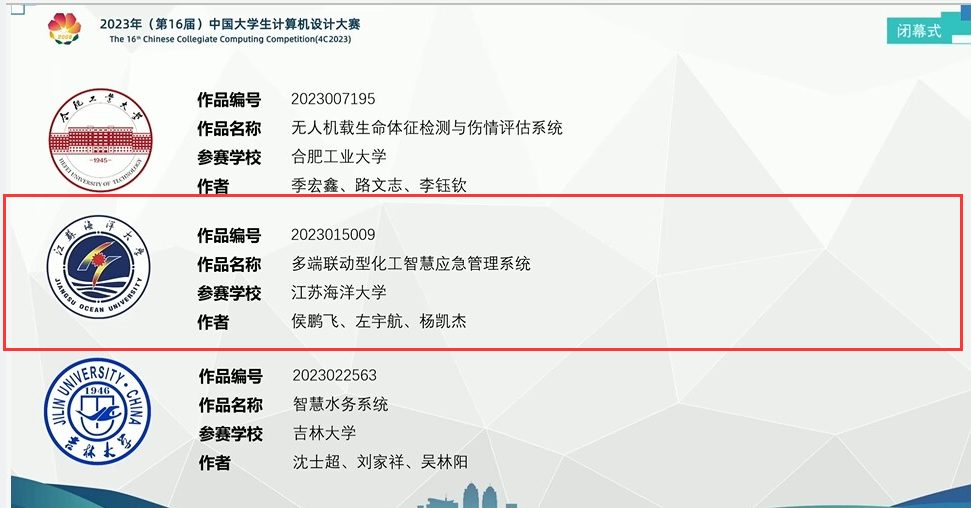 济南决赛区分管的国赛决赛作品类别是“软件应用与开发”,决赛采取线上答辩形式,时间为7月22日至26日。在强手如林的参赛队伍中,伟德bevictor三支代表队不畏强手,敢打敢拼,成功突围,有2件作品获得了全国决赛一等奖、1件作品获得全国决赛二等奖。获得一等奖的作品分别是:侯鹏飞、左宇航、杨凯杰三名同学的《多端联动型化工智慧应急管理系统》(指导老师:柏桂枝、李慧),以及邢立豹、顾勇、李纪元同学的《基于多端融合的化工安全监管可视化系统》(指导老师:李慧、姜琴)。获得二等奖的作品是:朱澔然、池声楼、曹睿轩同学的《“丝路畅行”特色文化旅游信息服务平台》(指导老师:施珺)。