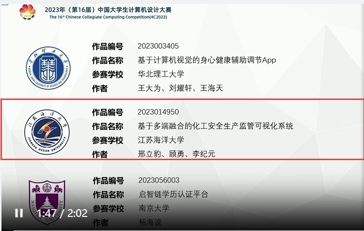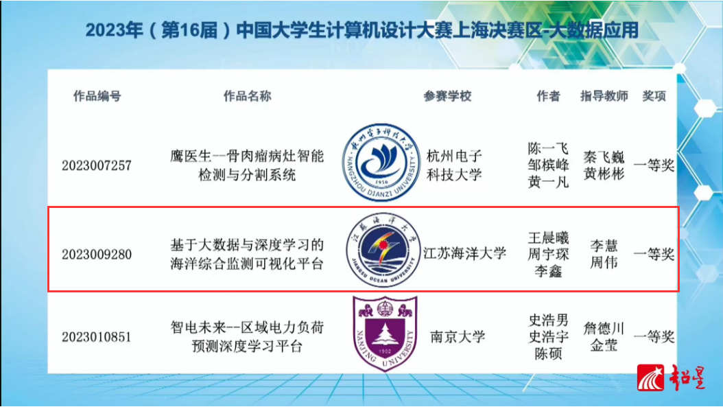 上海决赛区分管的国赛决赛作品类别是“大数据应用”和“国际生学汉语写汉字”,决赛采取线上答辩形式,时间为7月17日至21日,由东华大学、华东师范大学承办。来自全国的216所高校的327件作品参加了决赛答辩,伟德bevictor的参赛作品“基于大数据与尝试学习的海洋综合监测可视化平台(作者:王晨曦 周宇琛 李鑫;指导老师:李慧 周伟)”以优异的答辩获得评委的一致好评,最终荣获全国决赛一等奖,并被推荐为本次比赛的优秀作品向全国师生展示。团队成员在优秀作品点评环节的精彩表现,展现了伟德体育学子的风采。