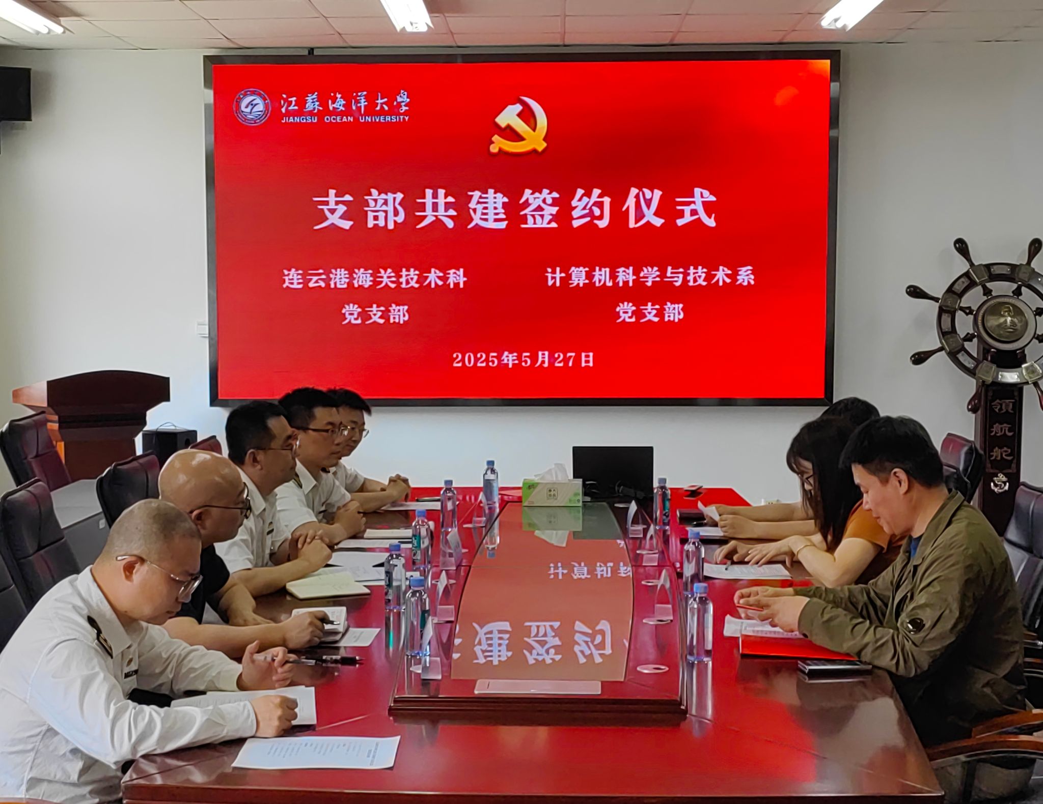 接着,连云港海关技术科党支部书记刘进涛、计算机科学与技术系党支部书记张键分别介绍了各自的支部概况以及党建活动的特色和亮点,并进行了共建签约仪式。