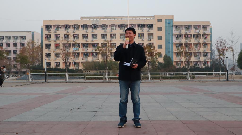 6点40分,在庄严的国歌声中,五星红旗迎着朝阳冉冉升起。升旗仪式后,院学工办副主任唐康首先就近期公司日常管理制度、宿舍安全工作及管理最新规定等事项向同学们进行了解读和强调。