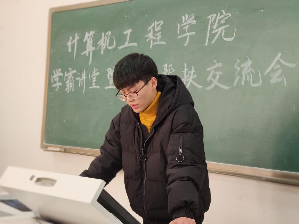徐李铭同学则主要向同学们介绍了学习的目的和方法,他为同学们介绍了三种学习方法:吸收前人经验、规划学习、实践和总结反思。他通过自己所学专业向同学们展示了所学课程的重要性,激励后进同学们的学习信心。他还根据自己的经验向同学们介绍了自己的学习方法,给与同学们丰富的学习经验。