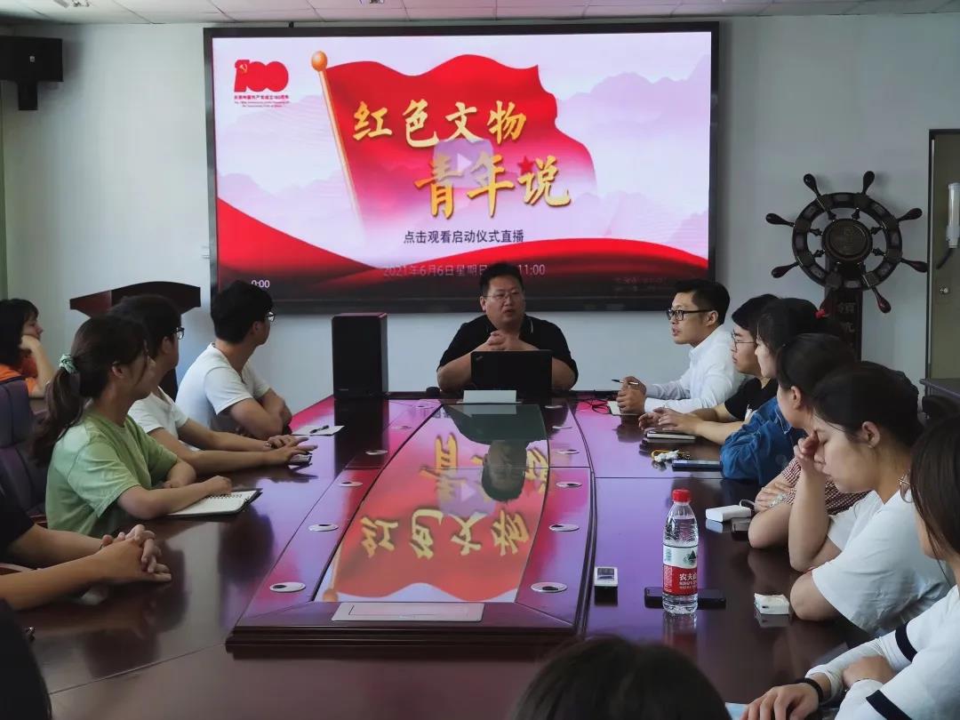 2021年6月6日上午九点半 ,伟德bevictor组织团学组织全体干部,18-20级的团支书、宣传委员、组织委员到306会议室集中观看”红色文物青年说”启动仪式,公司党委副书记兰巍和学工办副主任唐康及部分教师一同观看了仪式。