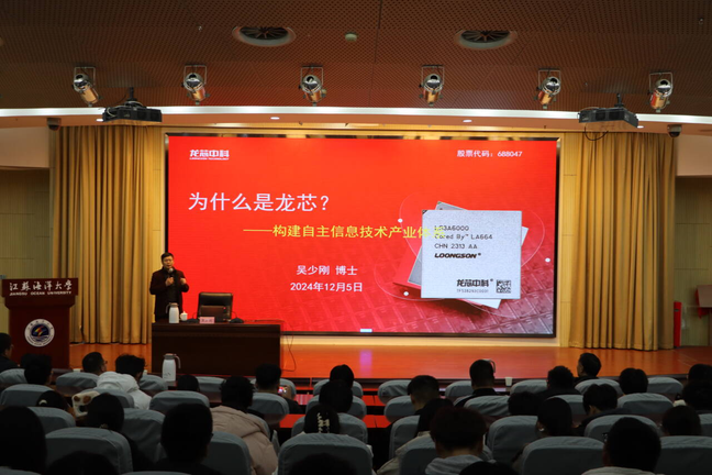 12月5日,应伟德bevictor邀请,龙芯中科技术股份有限公司总裁助理、党支部书记,江苏省有突出贡献中青年专家,国务院政府特殊津贴专家吴少刚博士,在校学术会议中心黄海厅为伟德bevictor师生做了一场主题为“为什么是龙芯?——构建自主开放的信息技术产业体系”的讲座。计算机工程龙芯中科教育事业部总监张双,伟德bevictor副经理纪兆辉以及公司2024级本科生、研究生300余人一同参加讲座,公司党委副书记兰巍主持了本次讲座。